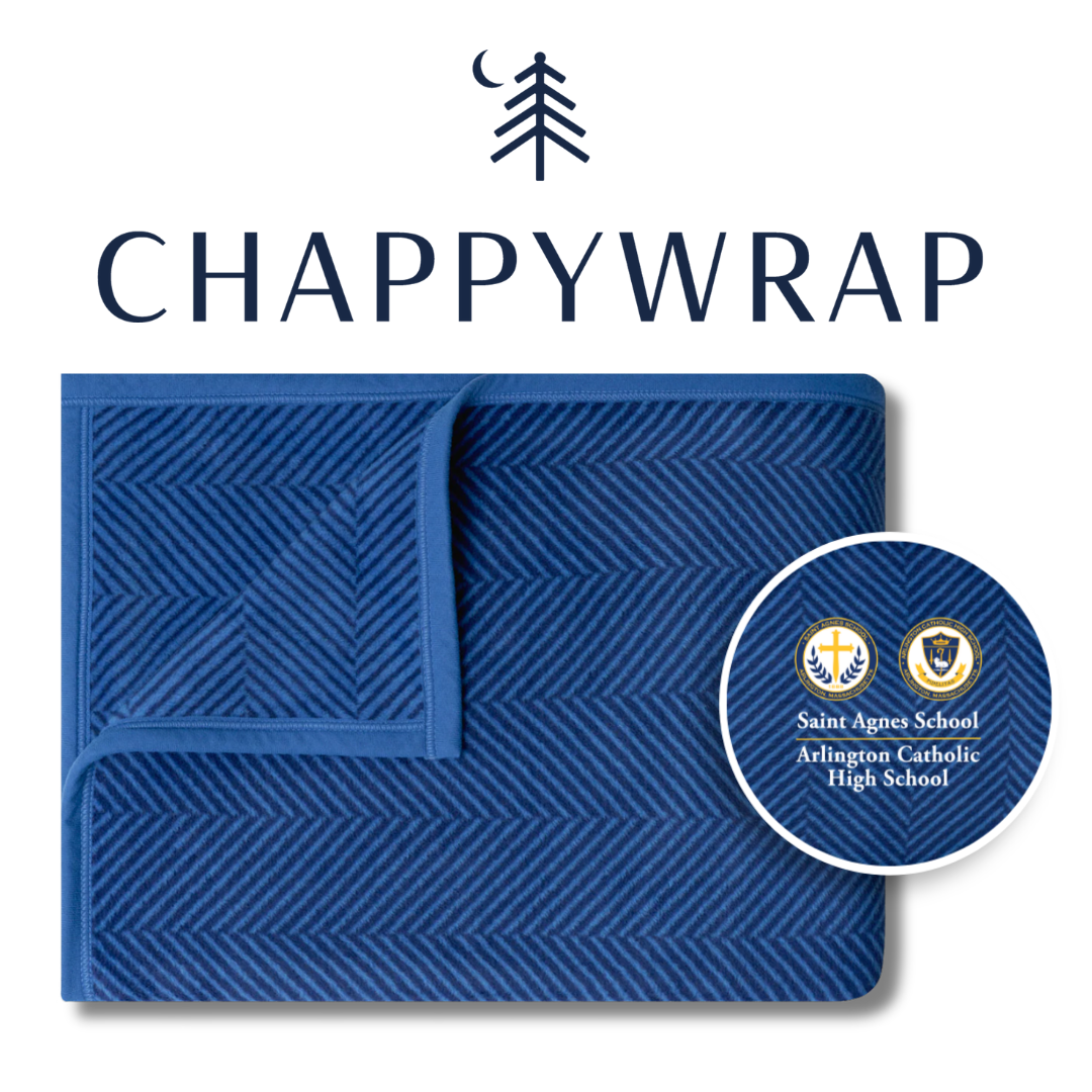 Receive a custom, luxury Original Chappy Wrap Saint Agnes School/Arlington Catholic High School blanket (60” x 80”) – our largest and most premium keepsake, celebrating the warmth and spirit of our school community.
