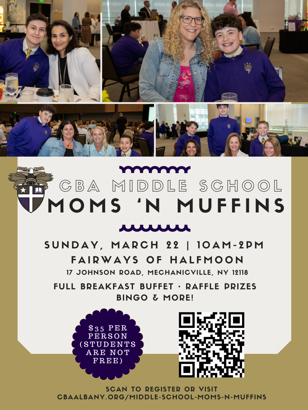 Entry for one guest to the CBA Middle School Moms N Muffins