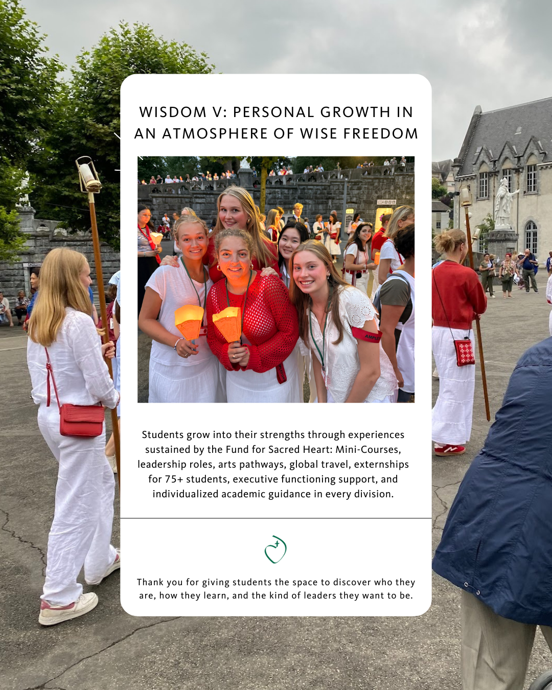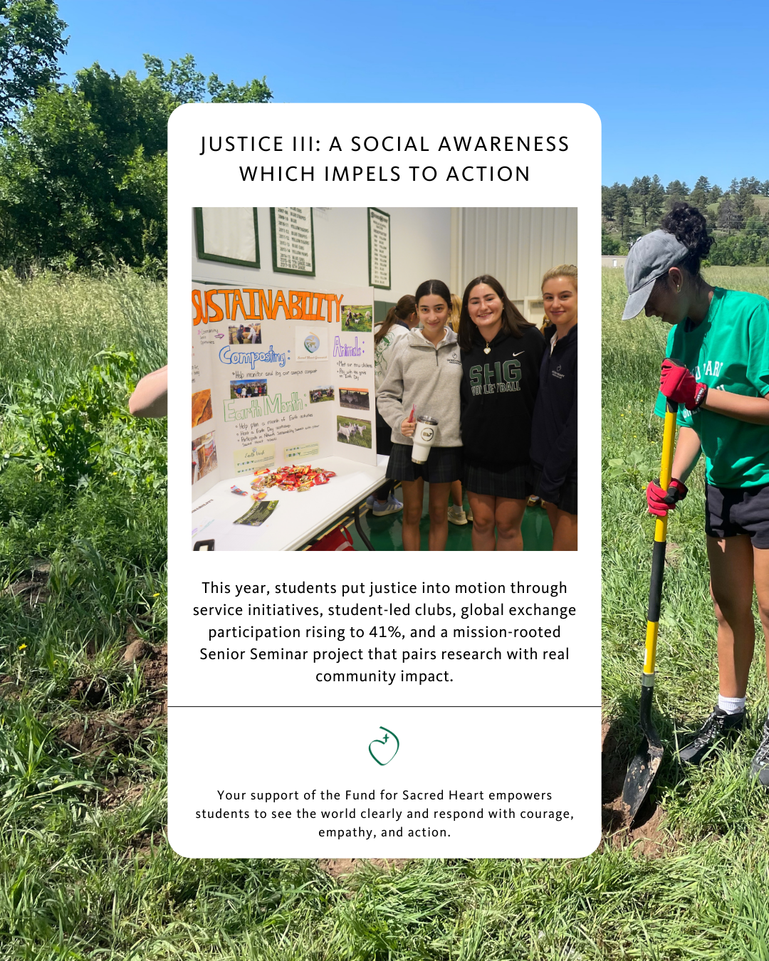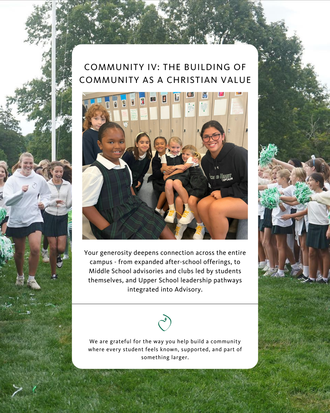 On February 10, join us for Give from the Heart, our community day of giving in support of the Fund for Sacred Heart. Your gift makes an immediate impact in the current school year, supporting academics, arts, athletics, financial Aid, mission and ministry, and the area of greatest need, strengthening the mission that shapes our students each day.