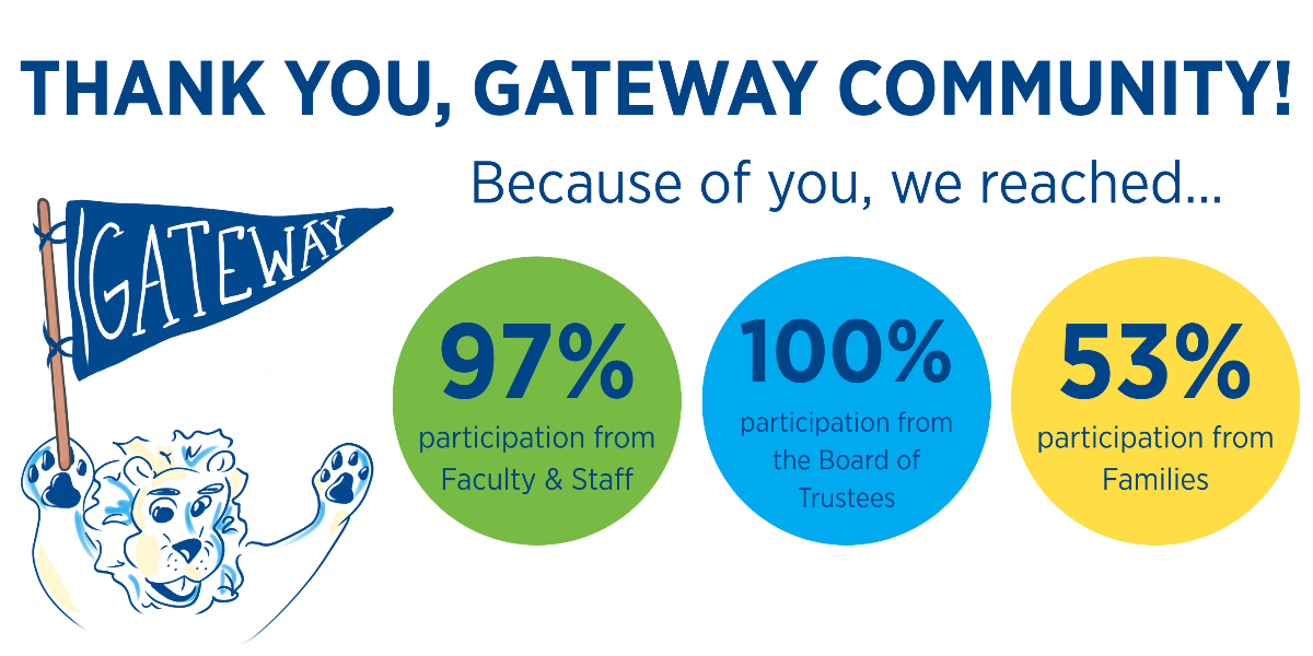 Get ready for an inspiring week of giving, gratitude, and Gateway pride! We are aiming for 100% participation from our entire community, and we have some exciting surprises in store.