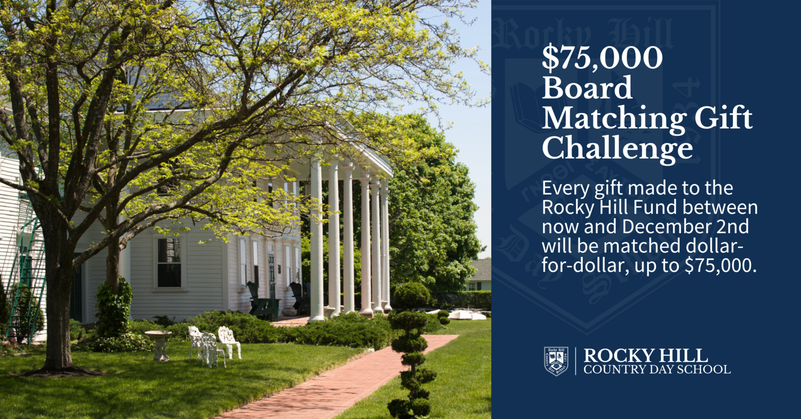 Double your impact on Giving Tuesday! The Rocky Hill Board of Trustees will match every gift made to the Rocky Hill Fund dollar-for-dollar, up to $75,000, between November 18th and December 2nd, making your gift go twice as far!
