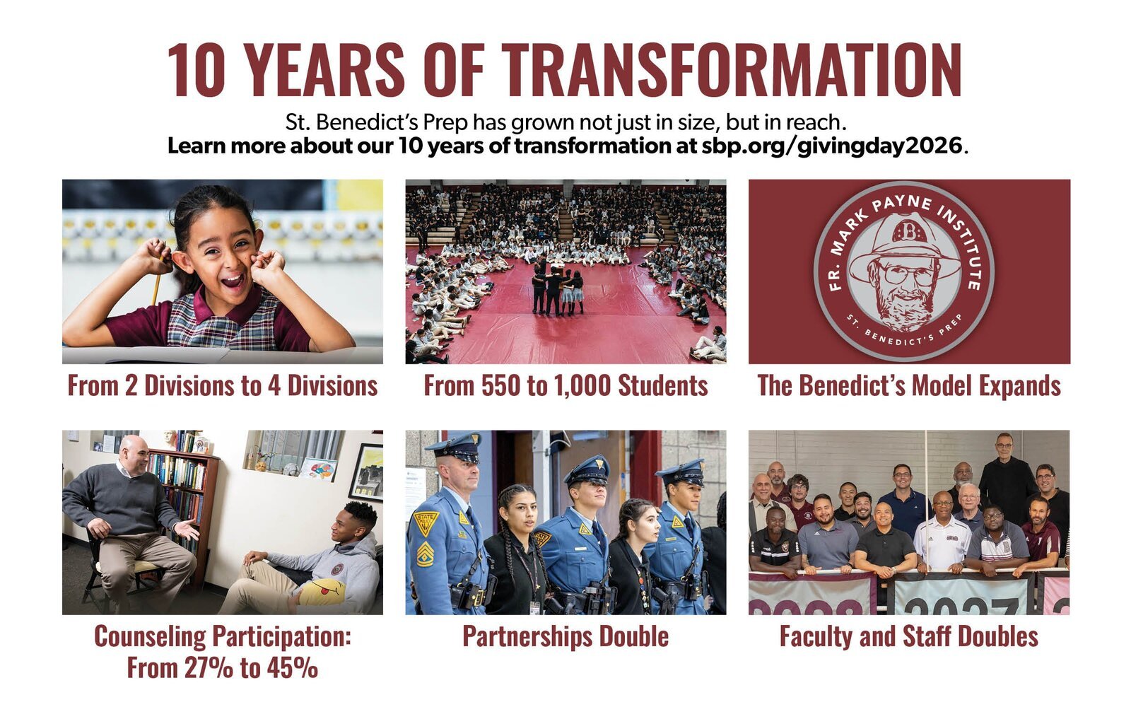 Ten years ago, when “The Resurrection of St. Benedict’s Prep” aired on 60 Minutes, the generosity of teammates like you helped launch a new era of growth and momentum for our community. Giving Day (March 20) is our opportunity to build on that momentum.