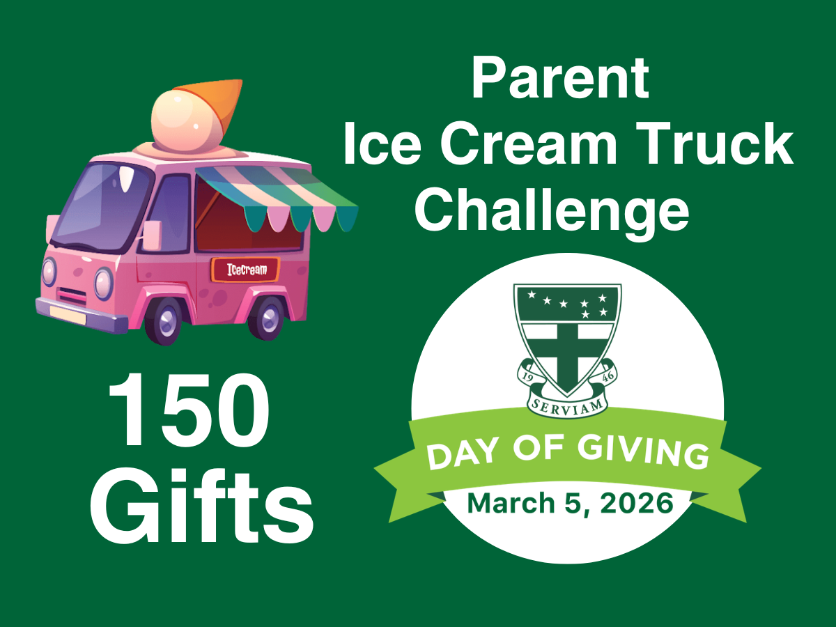 When we receive 150 individual gifts from current parents, we’ll bring the ice cream truck to campus later this spring for a free treat for all students, faculty, and staff! This is a highly-anticipated event each year! (Bonus: your gifts also count toward unlocking the money in the Big Give Challenge.)
