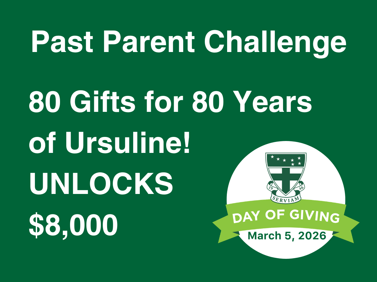 80 gifts for 80 years of Ursuline education! With 80 gifts from parents of alumnae a collective gift of $8,000 will be unlocked from a group of proud parents of Ursuline grads! They continue to support the Fund for Ursuline as a way of expressing their gratitude for the solid foundation it provided for their daughters. Thank you to the Kaster P’16, ‘18; Steinkrauss P’17, ‘22; and McNulty P’25 families.