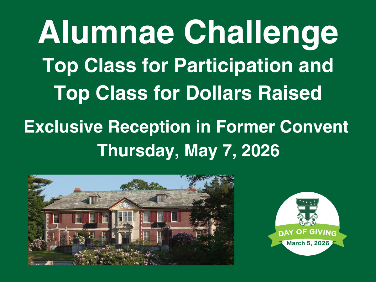 The Top Alumnae Class for Participation (highest number of donors from that class) and the top Class for Donations (highest dollar amount total) will be invited to a reception in the former Convent on Thursday, May 7, 2026! Come back to campus and enjoy a special party and tour of the old convent - exclusive for the winning classes. Click here to see your class standing!