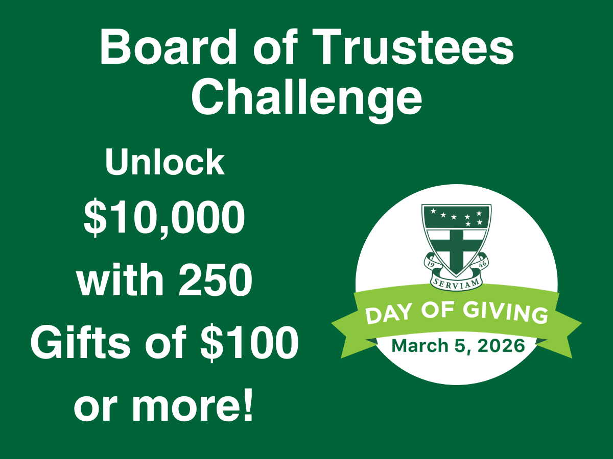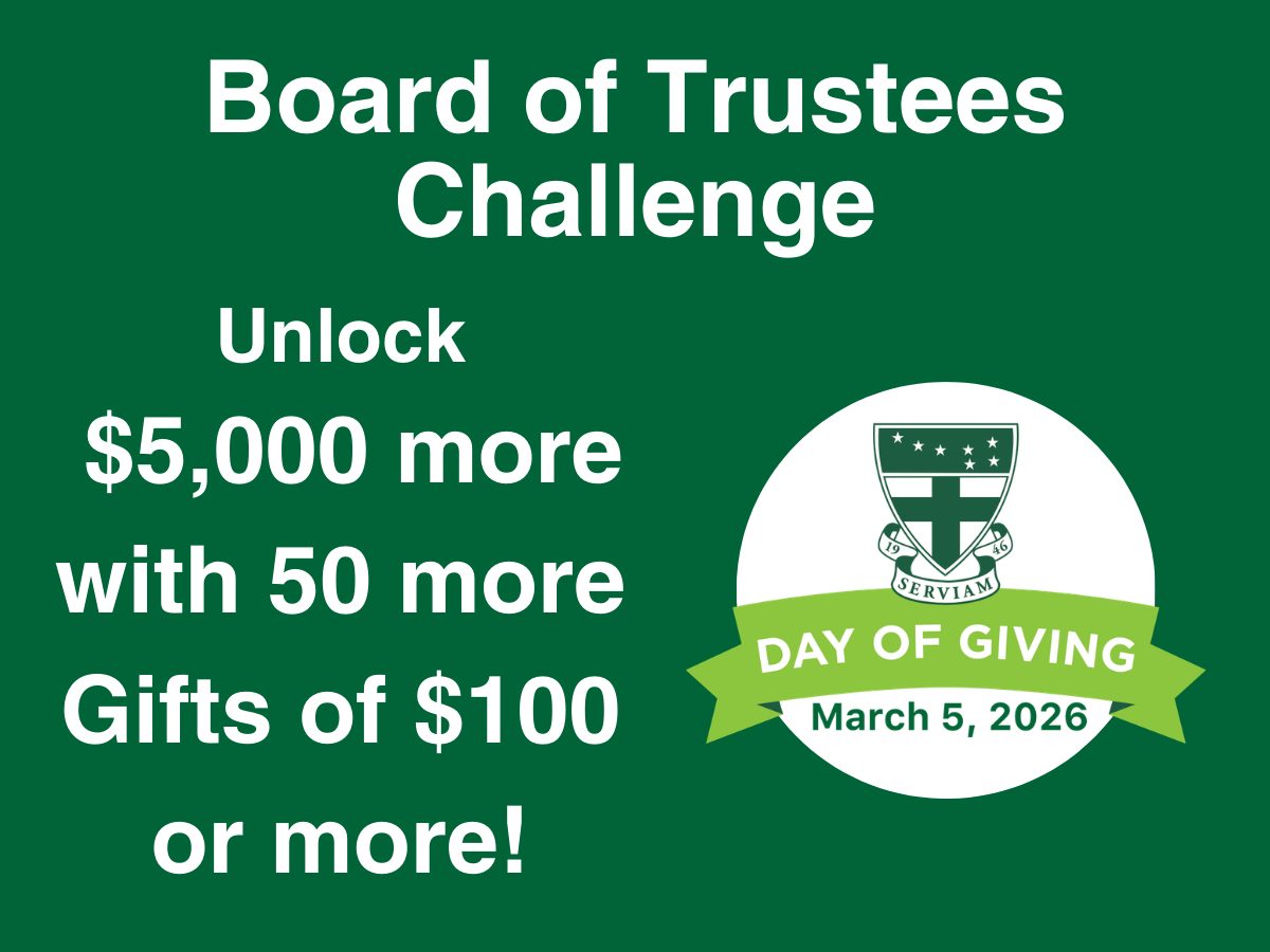 The Logue, Gioioso, and Patten families (Alumnae ’81, Parent ’90, ’93, ’14, ’16, ’21) are matching every gift, up to $30,000 in total! Thanks for your generosity!